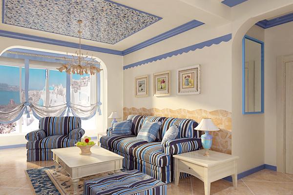 ??蔚藍色的浪漫情懷,海天一色的純美天然便是地中海的風格。重慶家裝設(shè)計其出現(xiàn)出來的特色為:白灰泥墻、接連的拱廊與拱門,陶磚、海藍色的屋瓦和門窗。