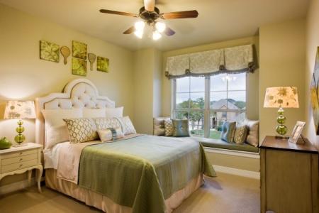 ??柔軟舒適的床品,淡色碎花墻紙,再調(diào)配天藍(lán)色的格子床布,飄窗的充分利用,添加了收納功用,光線投入室內(nèi),顯得愈加清新、舒適,打造完美的臥室空間。