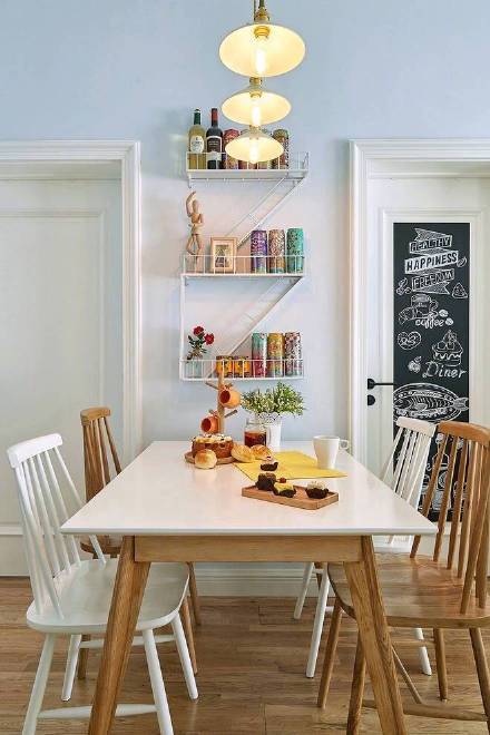 不同樣式的懸空隔板,搭建起了干凈舒適的立體空間,讓整體視覺效果更加通透明亮。考慮到居住人口較少,餐廳只設(shè)置了四個(gè)餐位。平日除了烹飪用餐,也可在此休閑品茶,相信和家人坐在一起,一定是幸福、溫暖的時(shí)刻。
