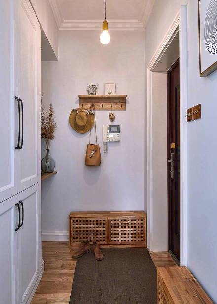 走廊只有黑、白、木三色,最大程度地闡述了簡約的含義。